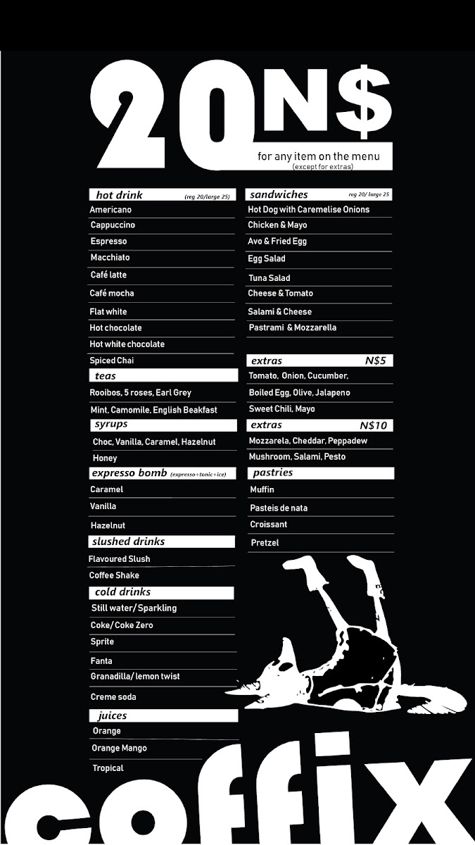 Introducing Coffix Coffee Shop, a hidden gem nestled in Maerua Mall, Windhoek. This charming café captures the essence of quality and affordability, making it an ideal spot for coffee enthusiasts and students alike. Every item on the menu is priced at just N$20, which offers great value without compromising on taste.
